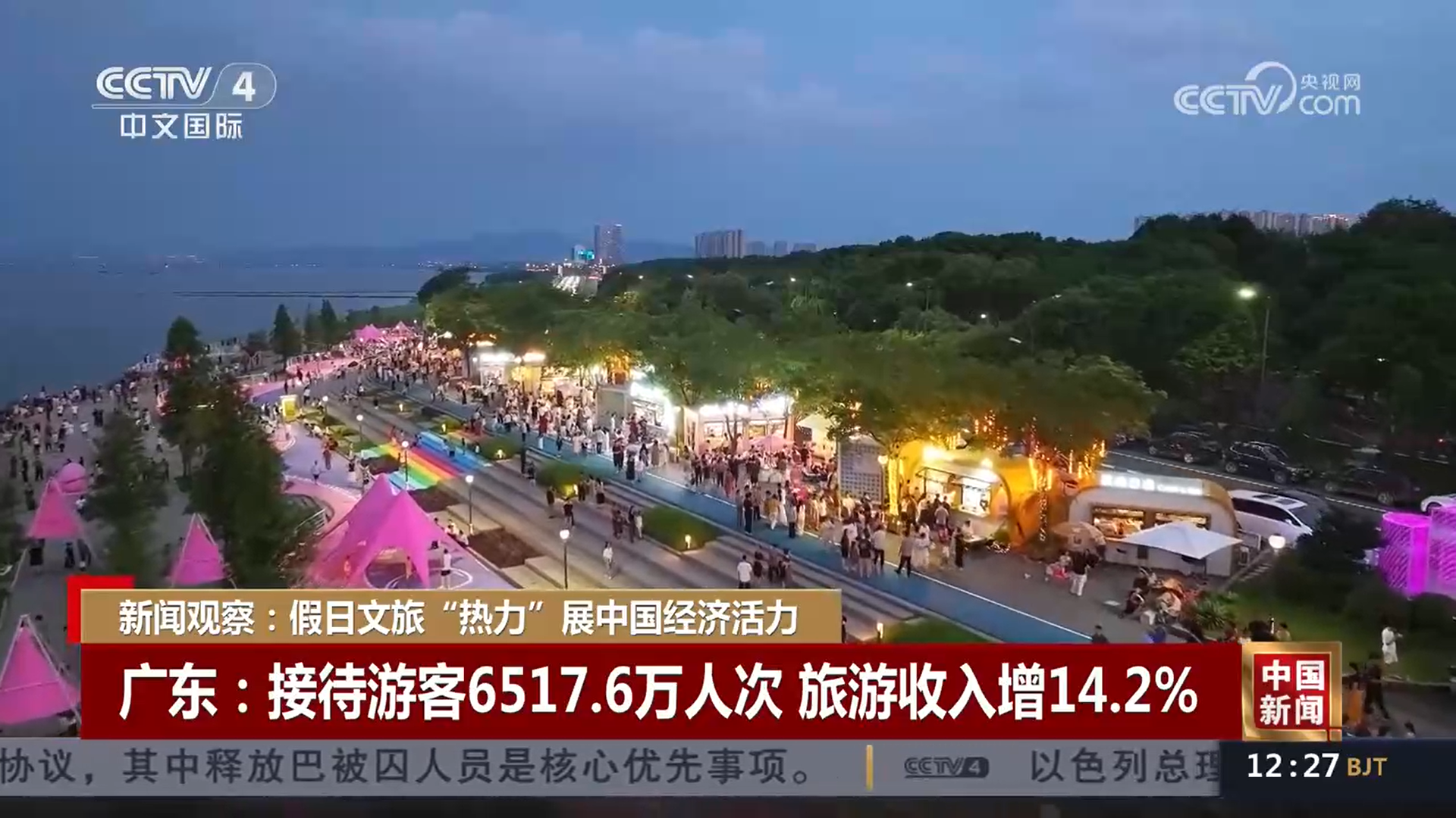 据初步测算,广东长假期间接待游客6517.6万人次,旅游收入增长14.2%。各地依据自身资源禀赋突出地方特色,打造新场景燃动消费新活力。